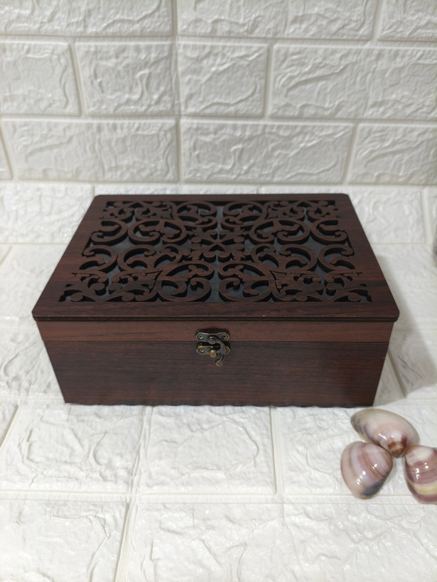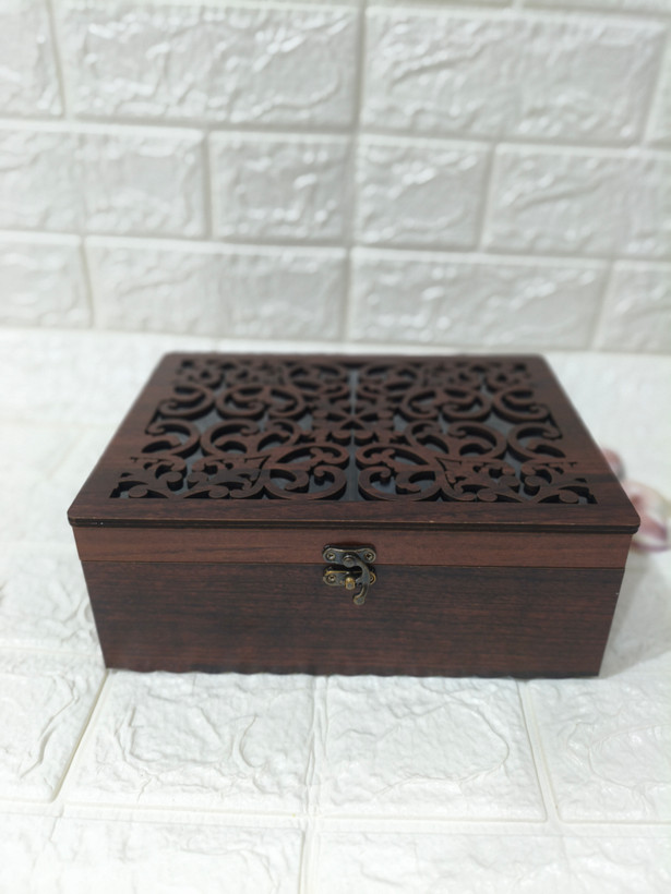 ابعاد : 24 * 18 * 7/8 جنس : ام دی اف رنگ : فندقی ظرفیت : 1 کیلوگرم خشکبارکاربرد : مناسب برای پذیرایی،کادو،بسته بندی انواع آجیل و خشکبار وتنقلات....