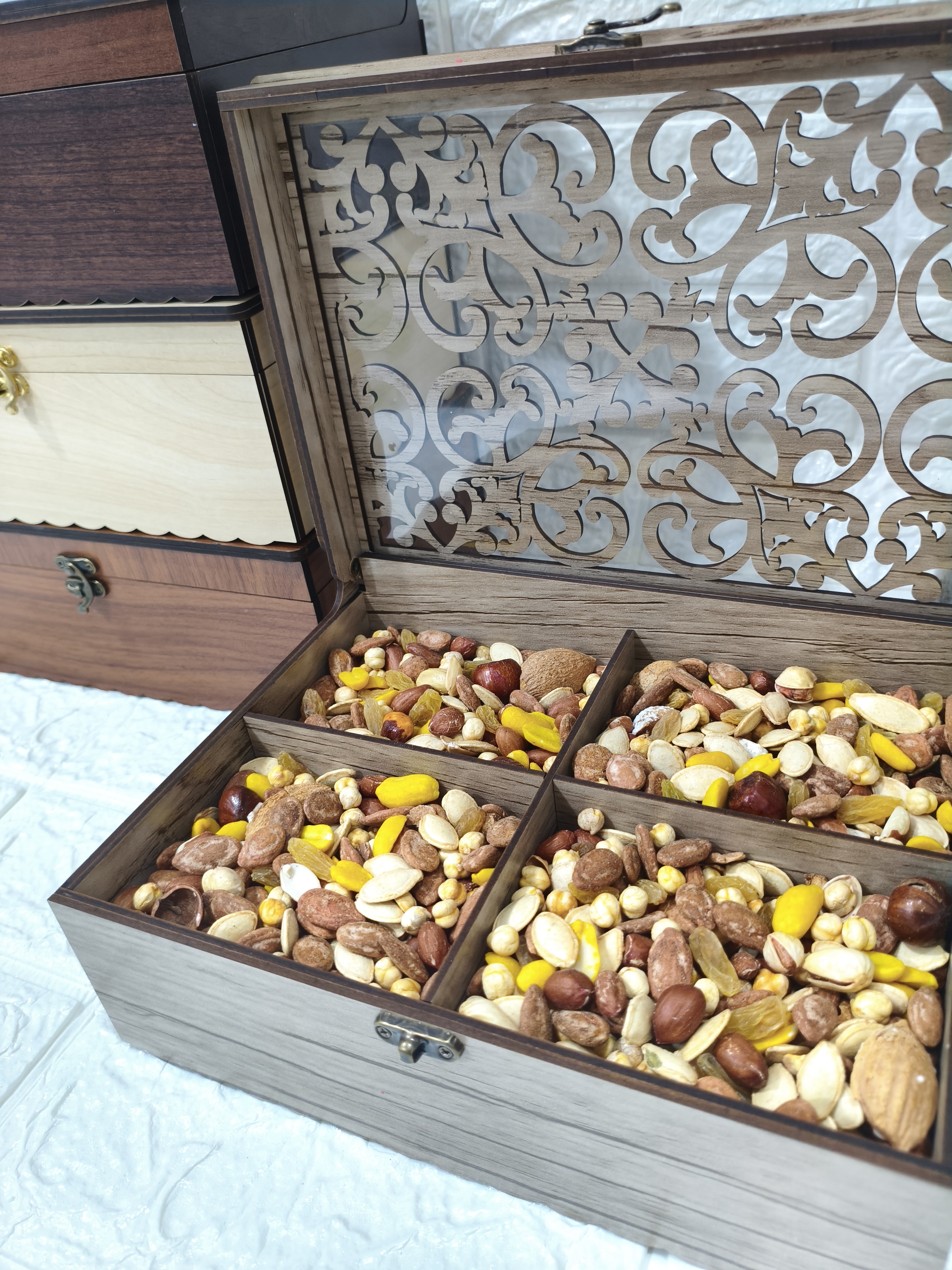 (عمده)جعبه چوبی آجیل و خشکبار مدل شاپرک ۴خونه